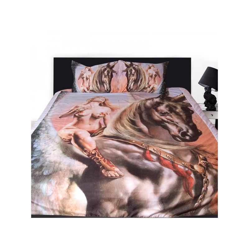 Материята, използвана за този мек и уютен спален комплект, е висок клас Поликотън. Поради своята устойчивост, материята запазва наситеността на цветовете и не губи формата си дори при многократни изпирания. Плътната и нежна нишка съдържа 80% памук и 20% полиестер. Плътността на плата позволява използването му както в зимния сезон, така и през летните горещини.