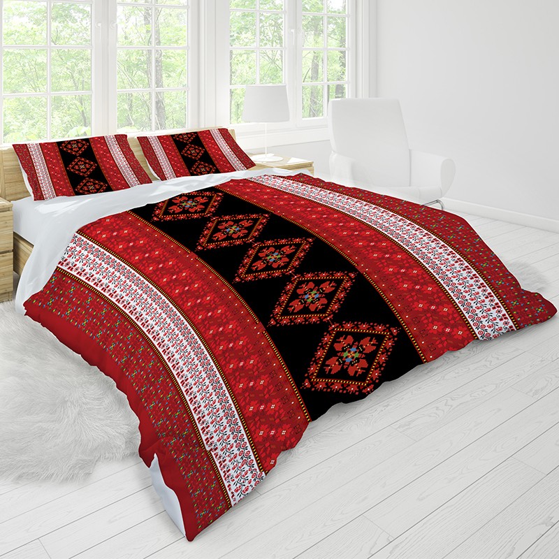 Материята, използвана за този мек и уютен спален комплект, е висок клас Поликотън. Поради своята устойчивост, материята запазва наситеността на цветовете и не губи формата си дори при многократни изпирания. Плътната и нежна нишка съдържа 80% памук и 20% полиестер. Плътността на плата позволява използването му както в зимния сезон, така и през летните горещини.