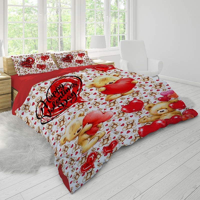 Материята, използвана за този мек и уютен спален комплект, е висок клас Поликотън. Поради своята устойчивост, материята запазва наситеността на цветовете и не губи формата си дори при многократни изпирания. Плътната и нежна нишка съдържа 80% памук и 20% полиестер. Плътността на плата позволява използването му както в зимния сезон, така и през летните горещини.