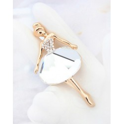 Нежна брошка Балерина, фино инкрустирана с бляскави кристали . Ново предложение на марката -бижута с кристали . Продуктът е с изключително високо качество на направа. Деликатният 18 каратов златен филм на покритието гарантира дълготрайния блясък и предпазва брошката от потъмняване. Големина на фигуата 50х25мм. Моделът е опакован в луксозна подаръчна кутия и се предлага със сертификат.