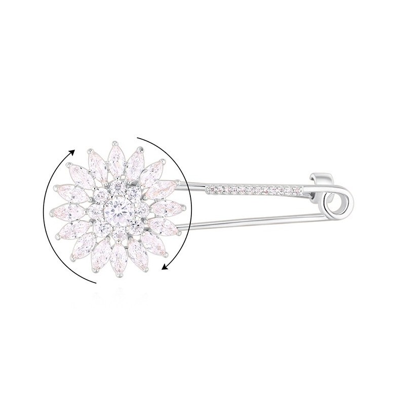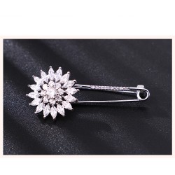 Луксозна, позлатена брошка цвете, инкрустирана с кристални цирконии . Изключително качествено изработена, не потъмнява, не променя цвета си с времето, не съдържа никел и не причинява алергии.18 каратово бяло златно покритие на металните елементи. Големина на фигурата 21 мм., захваща се за дрехата с шифт. Опакованa в луксозна кутия с включен сертификат на марката.