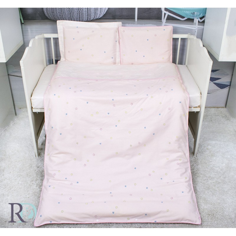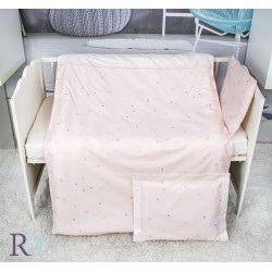 Комплекта е в приятна и мек на допр в приятно нежна цветова гама.