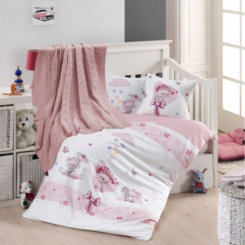Бебешко спално бельо бамбук с памучно одеяло PINK CAT