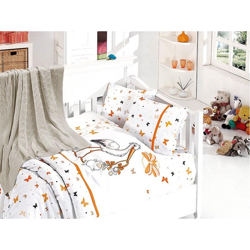Бебешко спално бельо бамбук с памучно одеяло - Щъркел Ориндж
