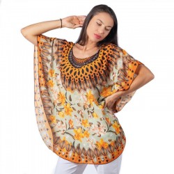Стилен и ефирен модел, подходящ за всеки дамски силует. Моделът е атрактивен, изключително удобен. И е изработен от високо качествен шифон. Материята е лека и проветрива, но не прозира и не се разнищва. Авторският ни принт и лимитираната серия гарантират уникалност и идентичност на този модел.