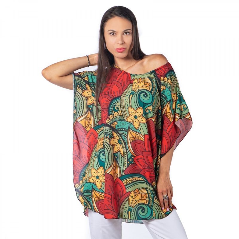 Стилен и ефирен модел, подходящ за всеки дамски силует. Моделът е атрактивен, изключително удобен. И е изработен от високо качествен шифон. Материята е лека и проветрива, но не прозира и не се разнищва. Авторският ни принт и лимитираната серия гарантират уникалност и идентичност на този модел.