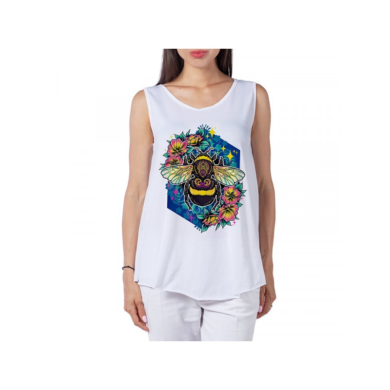Прекрасен Дамският потник, модел e подходящ за летните горещини, с удобна и широка кройка. Широки презрамки за по вече свобода, с дигитален 3D принт предаващ индивидуалност.