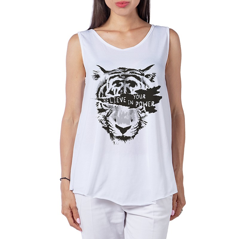 Прекрасен Дамският потник, модел e подходящ за летните горещини, с удобна и широка кройка. Широки презрамки за по вече свобода, с дигитален 3D принт предаващ индивидуалност.