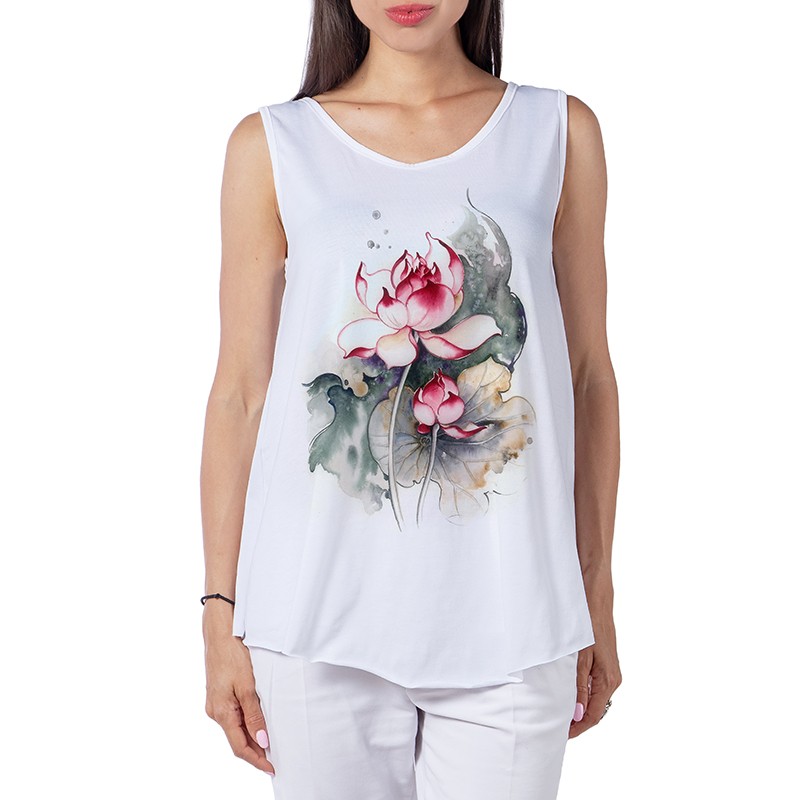 Прекрасен Дамският потник, модел e подходящ за летните горещини, с удобна и широка кройка. Широки презрамки за по вече свобода, с дигитален 3D принт предаващ индивидуалност.