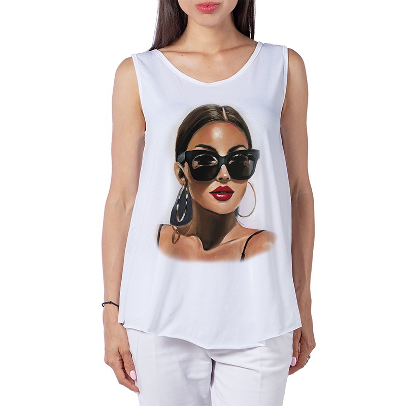 Прекрасен Дамският потник, модел e подходящ за летните горещини, с удобна и широка кройка. Широки презрамки за по вече свобода, с дигитален 3D принт предаващ индивидуалност.