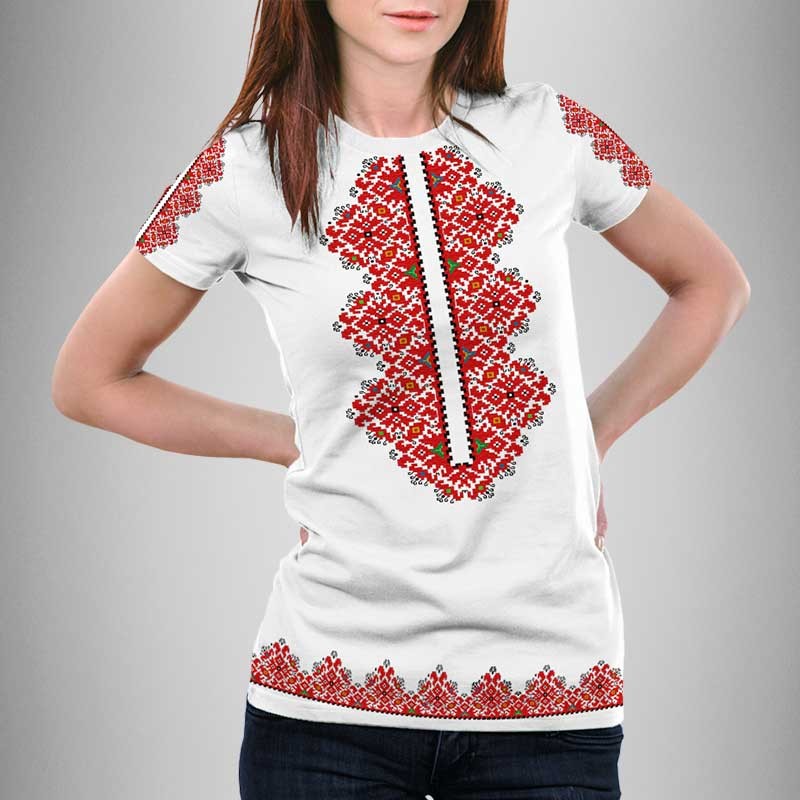 Дамската тениска с 3D принт с народни мотиви. Създадена от висококачествен памук, което я прави идеална за комфорт. Еластичността на тениската е 10%, което осигурява удобно прилепване към тялото и свобода на движение.
