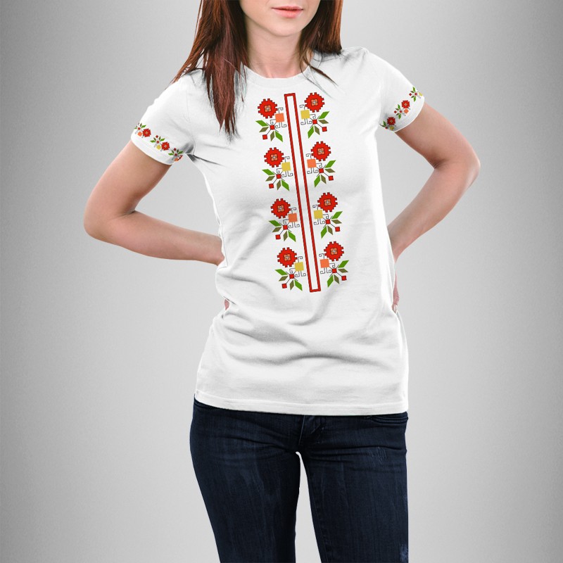 Дамската тениска с 3D принт с народни мотиви. Създадена от висококачествен памук, което я прави идеална за комфорт. Еластичността на тениската е 10%, което осигурява удобно прилепване към тялото и свобода на движение.