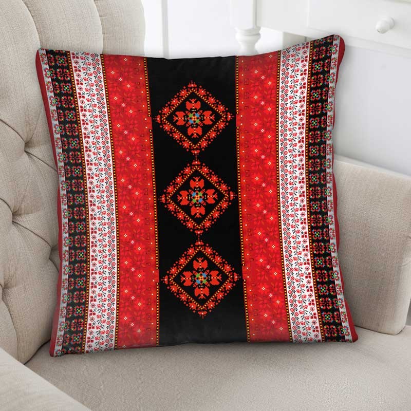 Пухкава декоративна възглавничка с цветен принт.