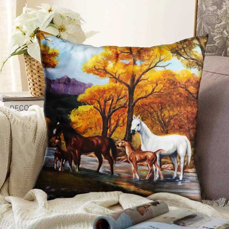 Пухкава декоративна възглавничка с цветен принт.