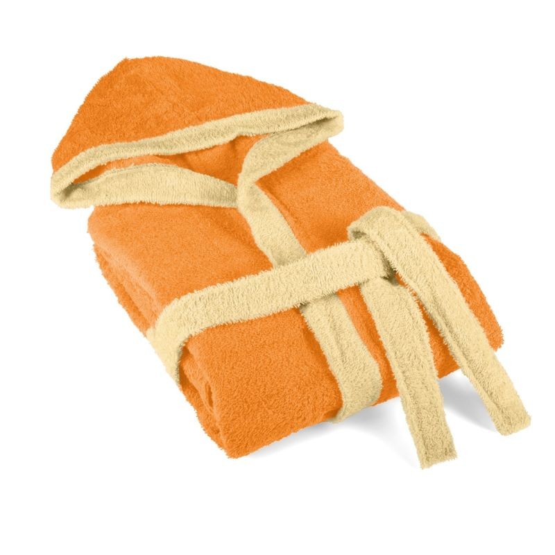 Памучен детски халат за баня с качулка. Мек, удобен и с отлична попивателна способност. Разполага с кант в различен цвят, който придава свеж и красив завършек на халата.