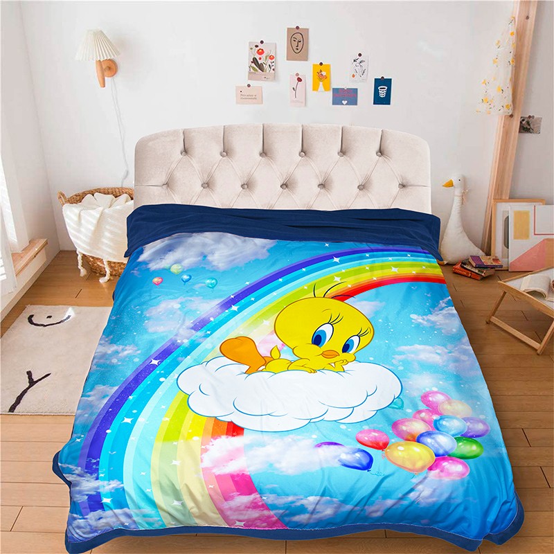 Детско поларено одеяло с две лица от мека плюшена материя с висококачествена 3D щампа. Материята, използвана за тaзи мекa и уютна двулицева завивка , е 100% полиестер Дигиталната щампа е с наситени цветове, издържащи на многократните изпирания. Устойчивостта на материята запазва наситеността на цветовете и не губи формата си. Плътността на мик бръшът позволява използването на завивката в зимния сезон .