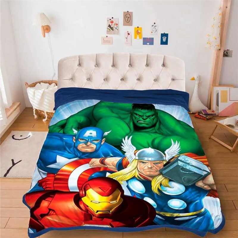 Детско поларено одеяло с две лица от мека плюшена материя с висококачествена 3D щампа. Материята, използвана за тaзи мекa и уютна двулицева завивка , е 100% полиестер Дигиталната щампа е с наситени цветове, издържащи на многократните изпирания. Устойчивостта на материята запазва наситеността на цветовете и не губи формата си. Плътността на мик бръшът позволява използването на завивката в зимния сезон .