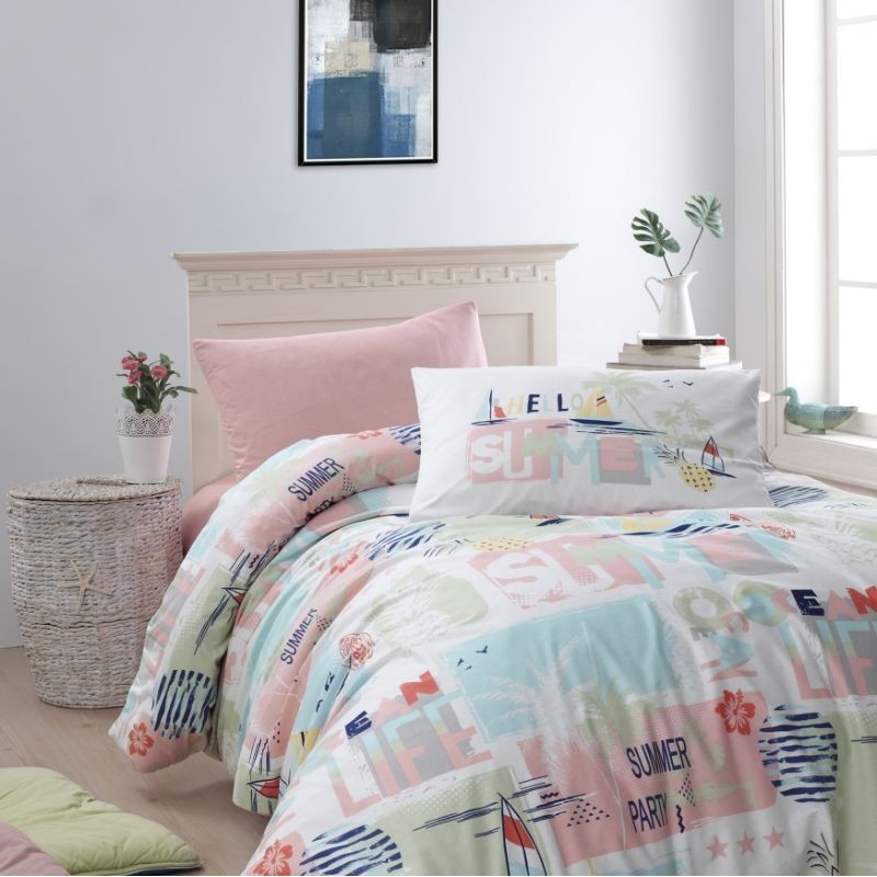 Спално бельо произведено от Ранфорс, 100% памук, 57 нишки/см2, 30/1 прежда, характеризиращо се с голяма здравина, устойчивост при пране и нежно при допир. Новата технология за багрене на цветове, която придава допълнителна здравина на тъканите и устойчивост при пране.