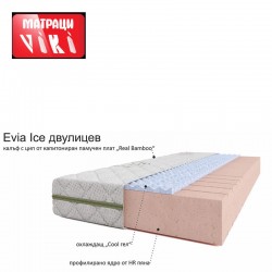 Двулицевият матрак „Евия Айс“ е изграден върху ядро от профилирана HR пяна и охлаждащ мемори гел от едната страна. Матрака е с висококачествена памучна дамаска “Real Bamboo” под която е поставен защитен олекотен филц тип Spunbond и силиконова вата с цип. Това дава възможност калъфа да бъде свален и изпран при максимална температура 30°.