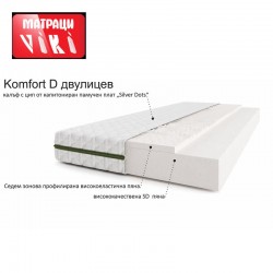 Двулицевият матрак Комфорт Д е с ядро от висококачествена SD пяна и калъф от капитонирана памучна дамаска, под която е поставен защитен олекотен филц тип Spunbond и силиконова вата.
