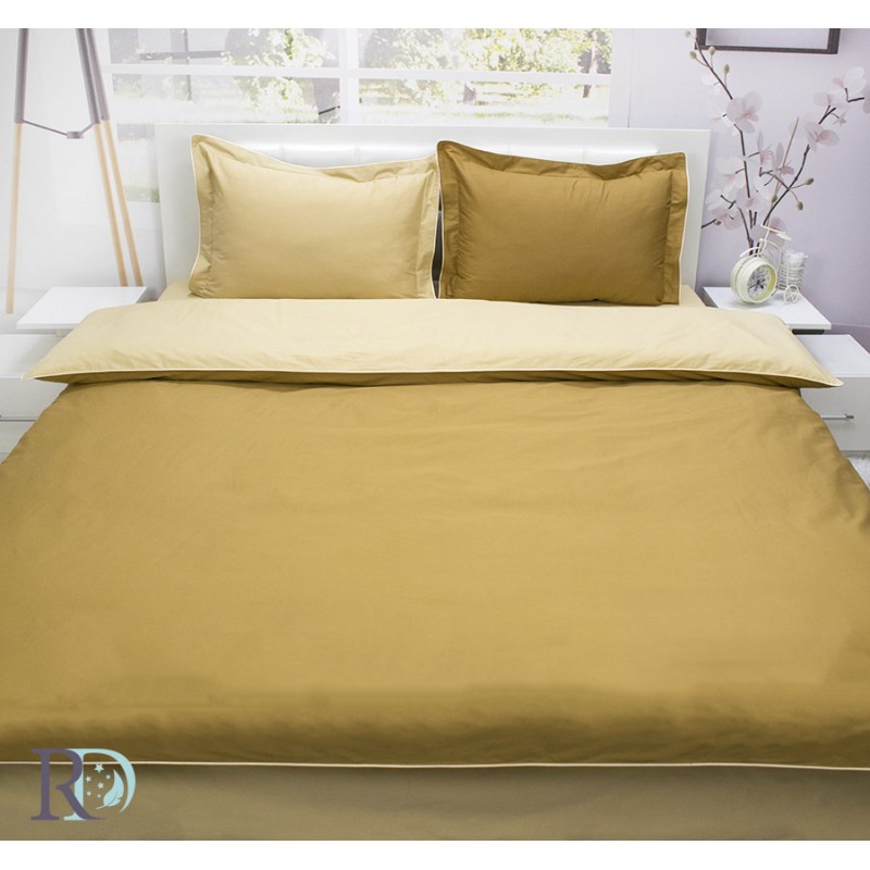 Спално бельо памучен сатен Охра и Бежово
