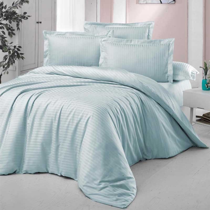 Луксозно спално бельо памучен сатен райе Резеда
