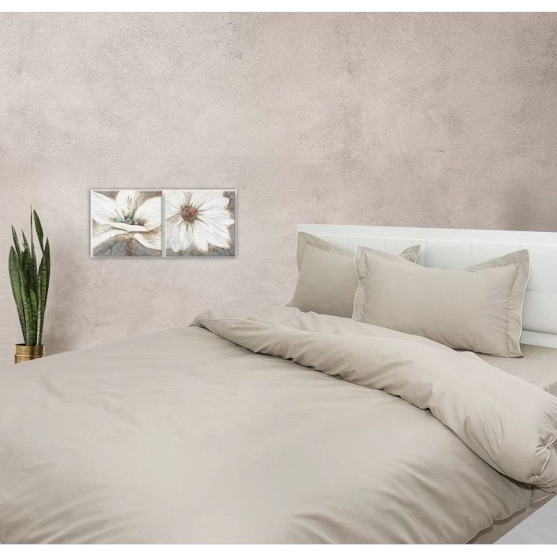 Едноцветен спален комплект от памучен сатен в нежен цвят предлага топла и уютна атмосфера. Изработен от висококачествен памучен сатен, този спален комплект се отличава с по-голям брой нишки, което допринася за неговата изключителна здравина. Освен това, той е плътно изтъкан, осигурявайки дълготрайна устойчивост на износване. Декоративните кантове добавят елегантност, а скритият цип на плика осигурява лесно поставяне и изваждане на завивките. Декоративната лента подобрява външния вид. Подобрете качеството на съня и естетиката на спалнята си с този луксозен комплект. Деликатните пастелни нюанси създават успокояваща атмосфера, която насърчава релаксацията и спокойствието, докато богатата сатенена тъкан добавя нотка лукс към вашето лично светилище.