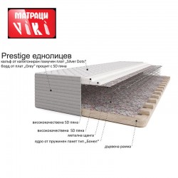 Ядрото на матрака е изградено от пружинен пакет тип “Бонел” покрит с иглонабит латексов филц, ватин и дунапрен. Пружинният пакет е изграден от двойно стоманизирано закалени спираловидни чашки и метална щанга. Прошивката е изградена от памучна дамаска, под която е поставен защитен олекотен филц тип “Spunbond” и силиконова вата .
