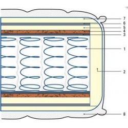 1 - Пружинно ядро: съдържа 250 бр./м2 стоманени пружини индивидуално обезшумени с текстилен калъф, изработени по системата “Pocketed springs” с машина на швейцарската фирма “Spuhl”.