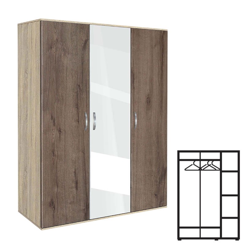 Трикрилен гардероб, АВА 3, сонома с орех