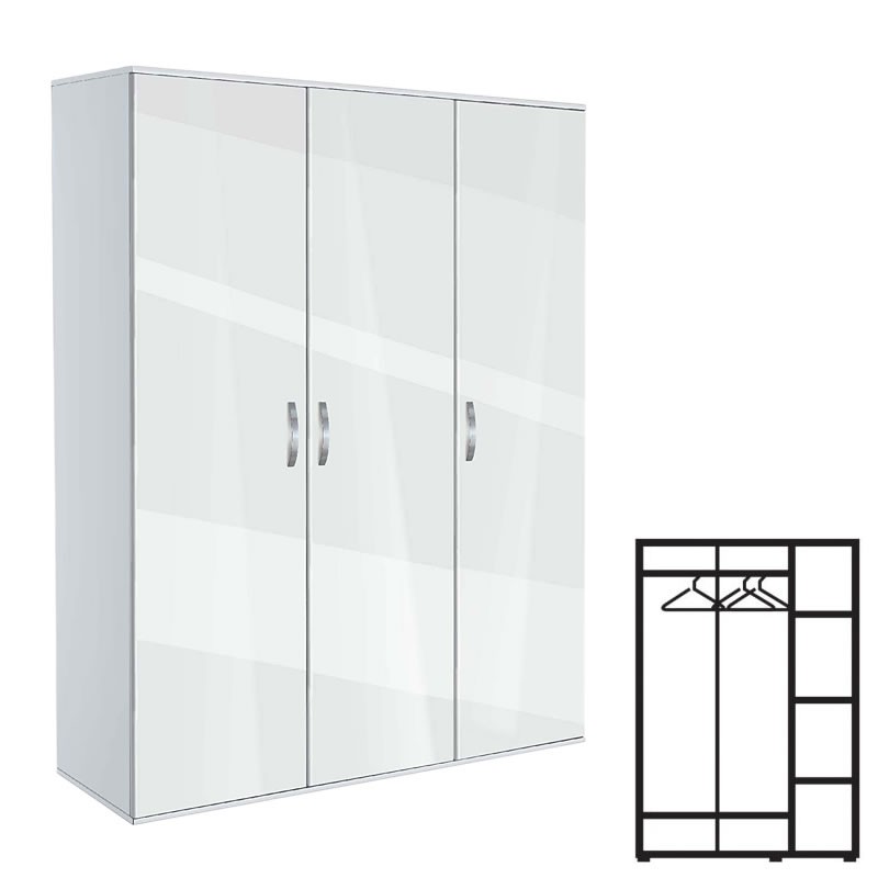 Трикрилен гардероб, АВА 3, бяло с бял гланц