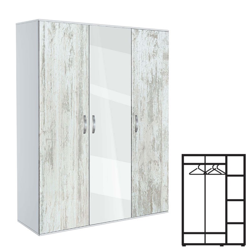 Трикрилен гардероб, АВА 3, бяло с кристал