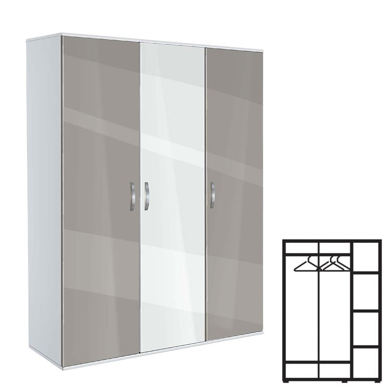 Трикрилен гардероб, АВА 3, бяло със сив гланц