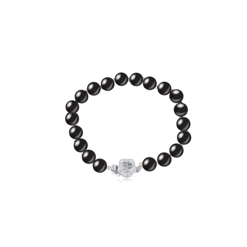 Елегантна гривна декорирана с кристални, блестящи перли . Красив и нежен, нов модел, който впечатлява с модерната си визия. Закопчалката на гривната е позлатена с 18 каратово бяло, златно покритие. Големина на перлите 8 мм., дължина на гривната 18 см. Изработена от ювелирна сплав с високо качество и черна ваксова изключително здрава корда. Опакована в елегантна, подаръчна кутия, със сертификат на марката.