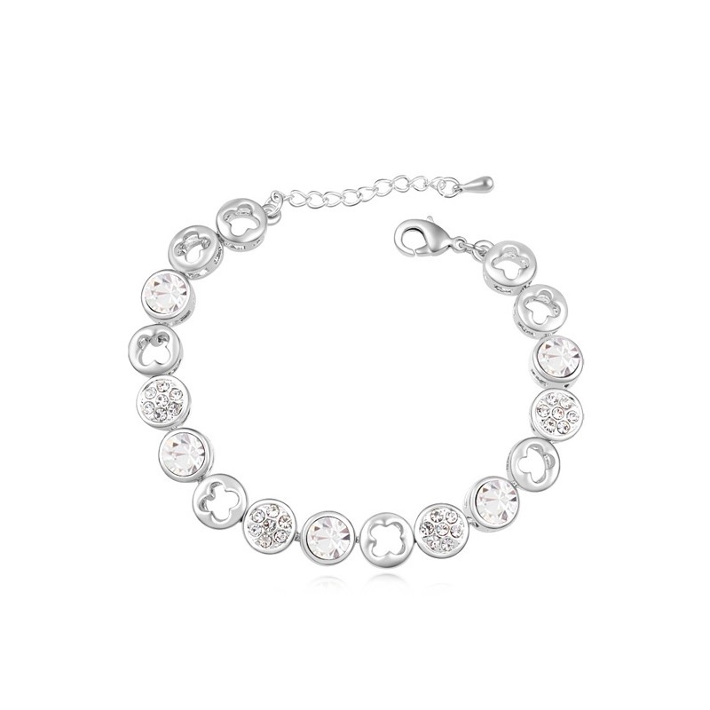 Елегантна позлатена гривна, инкрустирана с блестящи кристали подходяща за стилни и изискани дами. Перфектно качество на изработка, нежен и красив дизайн.