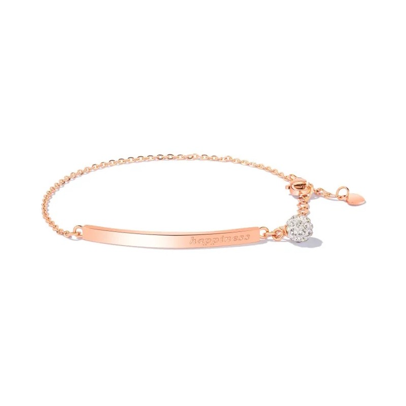 Ефектна гривна, инкрустирана с кристален цирконий, подходяща за нежни и романтични дами с усет към красивото. Перфектно качество на изработка, стилен и красив дизайн. С послание надпис "Happiness".