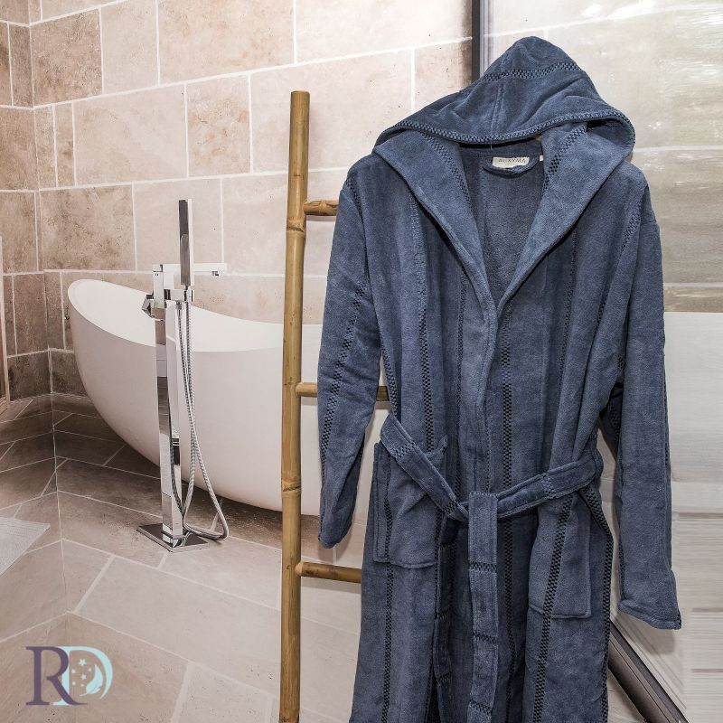 Изживейте лукса с мъжкия халат Моника - вашата ежедневна доза мекота и комфорт след баня. Изработен от 100% висококачествен памук с грамаж 400 гр/кв.м., той гарантира отлична попиваемост и нежно докосване до кожата. Предлага се в елегантна опаковка, идеална за подарък.