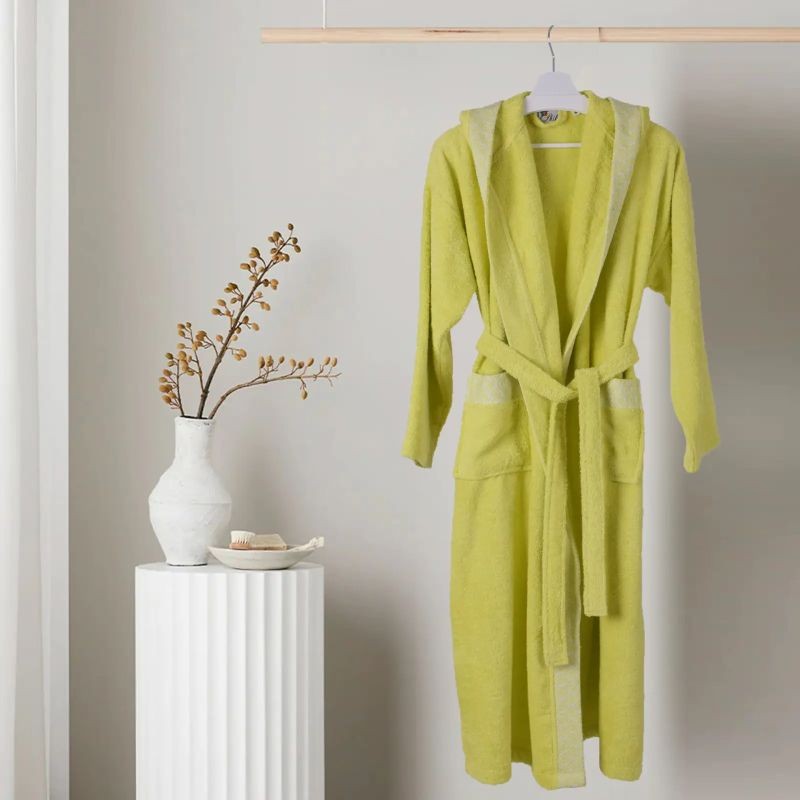Открийте нашия халат за баня от серия Chic, направен изцяло от 100% памук. Този халат е удобен, мек и плътен, предлага се в свежи и модерни цветове, за да отговаря на всеки вкус.