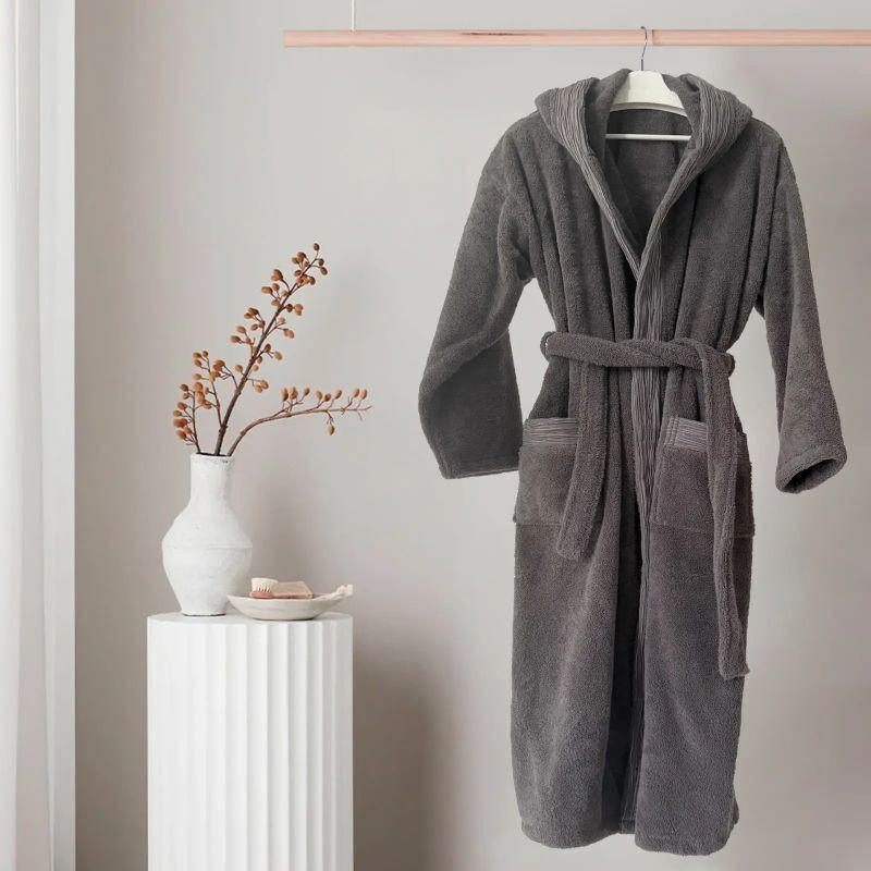 С впечатляваща абсорбираща способност и перфектно падане по тялото, халатите от серия "Аида" ще ви облеят в топлина след всяко къпане. Те са проектирани за хора, които не правят компромиси с качеството и търсят елегантност в ежедневието. Преживейте усещането за лукс и натуралност с всеки допир!