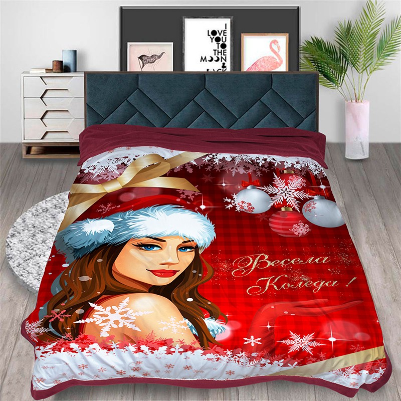 Коледно поларено одеяло с две лица от мека плюшена материя с висококачествена 3D щампа. Материята, използвана за тaзи мекa и уютна двулицева завивка , е 100% полиестер Дигиталната щампа е с наситени цветове, издържащи на многократните изпирания. Устойчивостта на материята запазва наситеността на цветовете и не губи формата си. Плътността на мик бръшът позволява използването на завивката в зимния сезон .