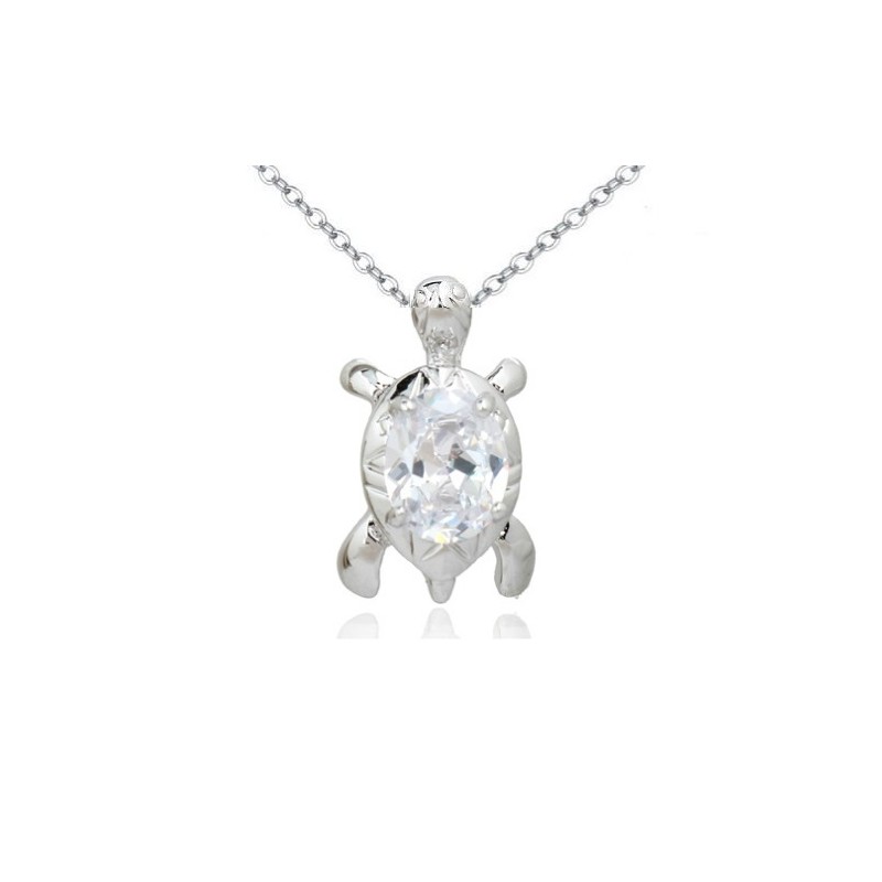 Нежно колие с кристалиен цирконий . Стилно и елегантно, с форма на малка костенурка-символ на успех, късмет и щастие.