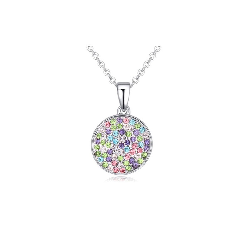 Елегантно колие, инкрустирано с красиво фасетирани, разноцветни кристали . Модел с красив и елегантен дизайн, подходящо за всеки повод и тоалет. Изработката на бижуто е перфектна, а гланца на позлатата и блясъка на кристалите придават на колието една великолепна и луксозна визия.
