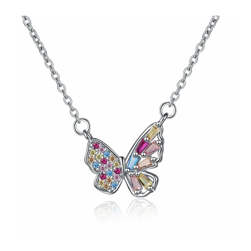 Нежно, позлатено колие пеперуда, инкрустирано с блестящи кристали . Стилно и елегантно, с интересен дизайн и перфектно качество на изработка. Подходящо за нежни и романтични дами.