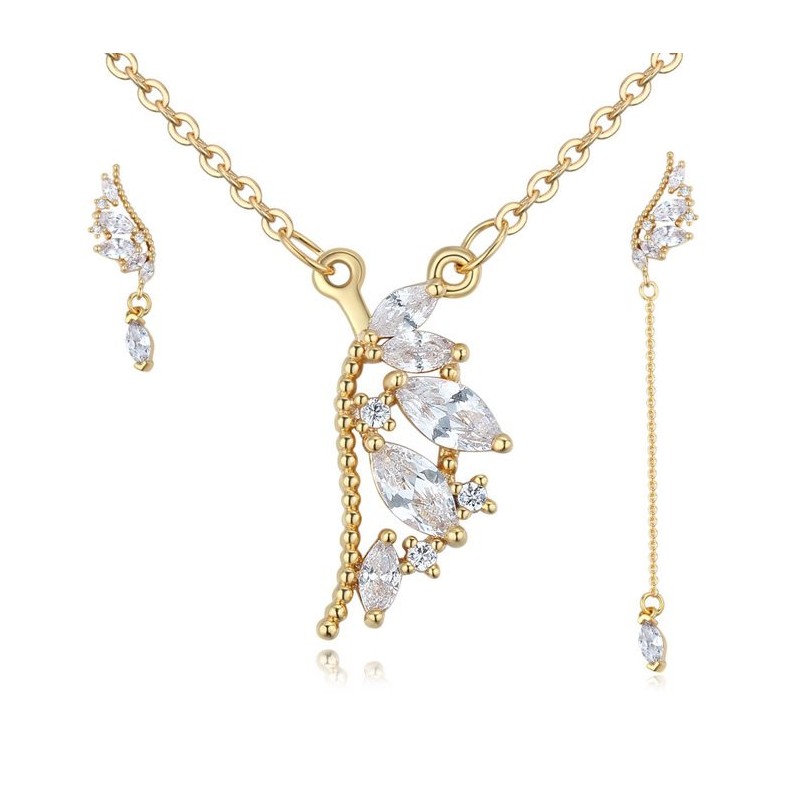 Нежен комплект инкрустиран с блестящ цирконий . Стилен и елегантен, с красив дизайн и перфектно качество на изработка.
