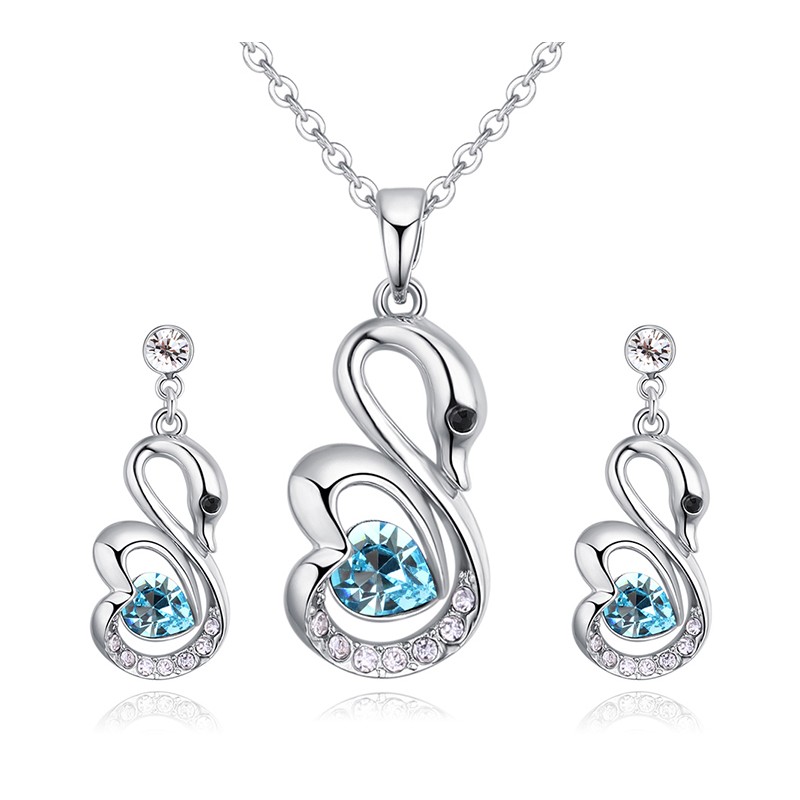 Луксозен позлатен комплект лебеди инкрустиран с кристали . Материал на металната част специална бижутерийна сплав - не потъмнява, не променя цвета си, без съдържание на никел, не предизвиква алергии.18 микрона бяло златно покритие на металните елементи.
