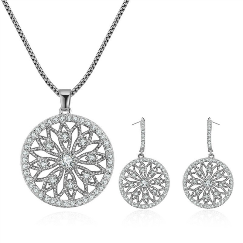 Нежен комплект инкрустиран с блестящ цирконий . Стилен и елегантен, с красив дизайн и перфектно качество на изработка.