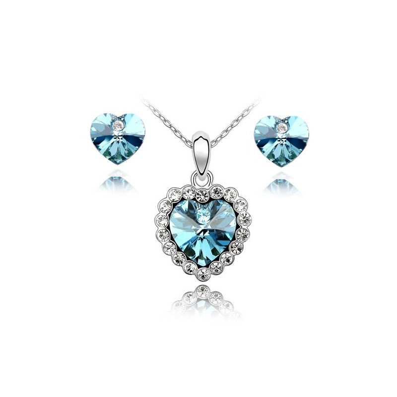 Елегантен комплект инкрустиран с кристали . Материалът на металната част е бижутерийна сплав, която не потъмнява и не променя цвета си, не съдържа никел и не предизвиква алергии. Бялото златно покритие на металните елементи им придава изключителен блясък и гланц. Големина на висулката на колието 23х13 мм., верижка 40 см.+5см. удължаващо звено, размер на обеците 13х10 мм., закопчават се винт с допълнителен силиконов стопер. Продуктът е опакован в луксозна подаръчна кутийка и се предлага със сертификат.