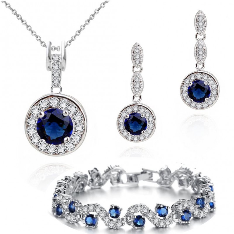 Нежен комплект  от три части, инкрустиран с блестящ цирконий . Стилен и елегантен, с красив дизайн и перфектно качество на изработка. Опаковка: Луксозна кутия и сертификат на марката.
