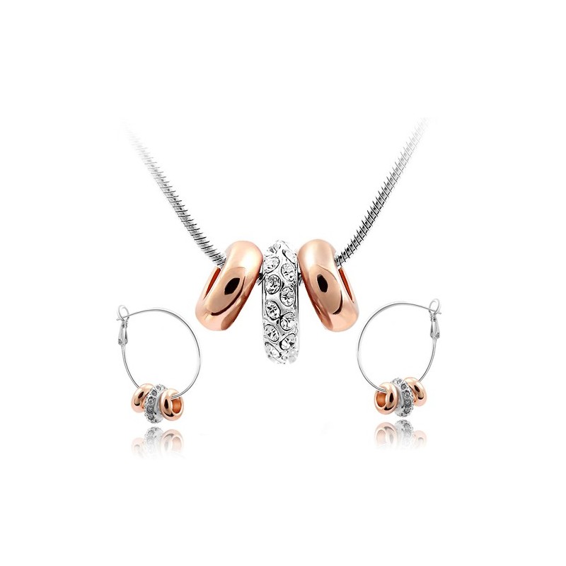Луксозен позлатен комплект инкрустиран с бляскави кристали . Перфектно качество на изработка, закачлив и модерен дизайн, подходящ за дами на всяка възраст.