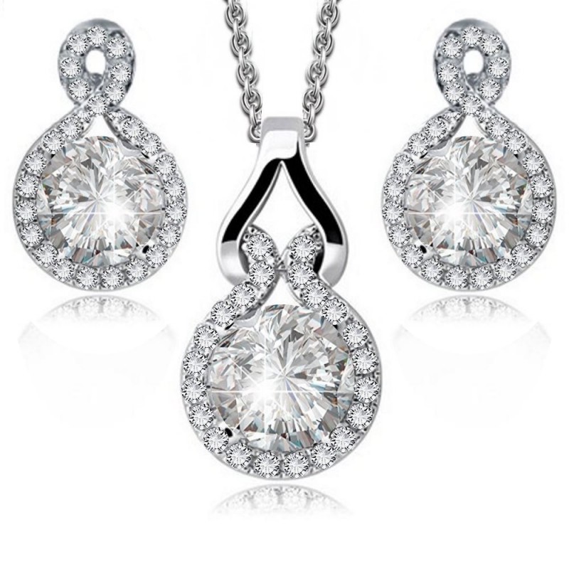 Елегантен комплект, инкрустиран с кристален цирконий . Модел с красив  дизайн, подходящ за изискани и стилни дами. Изработката на комплекта е перфектна, а гланца на позлатата и блясъка на кристалите му придават една великолепна и луксозна визия.